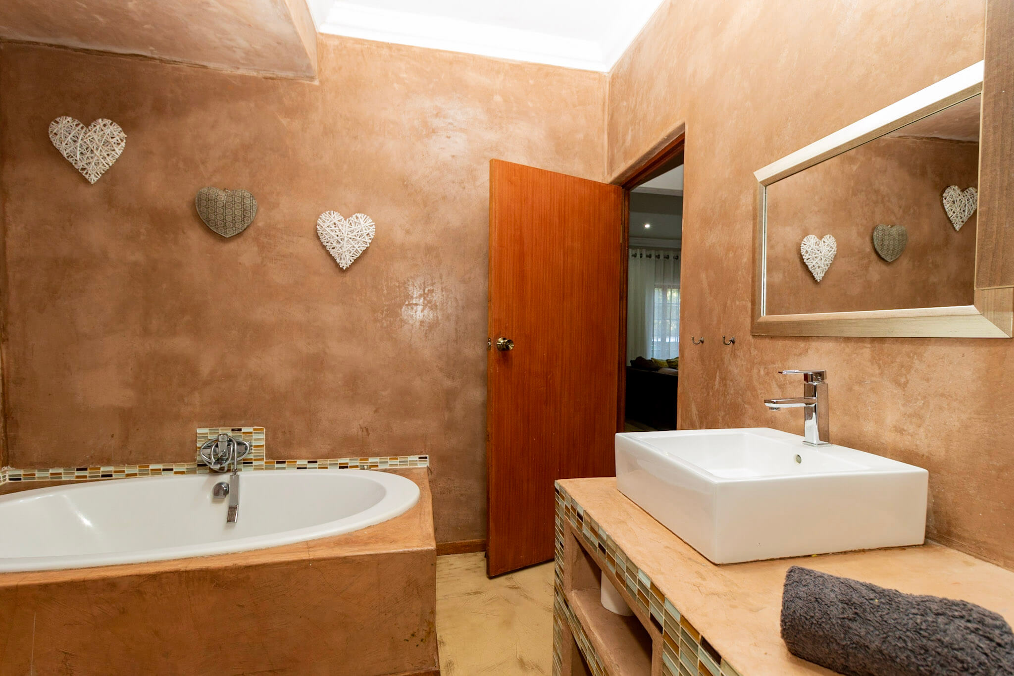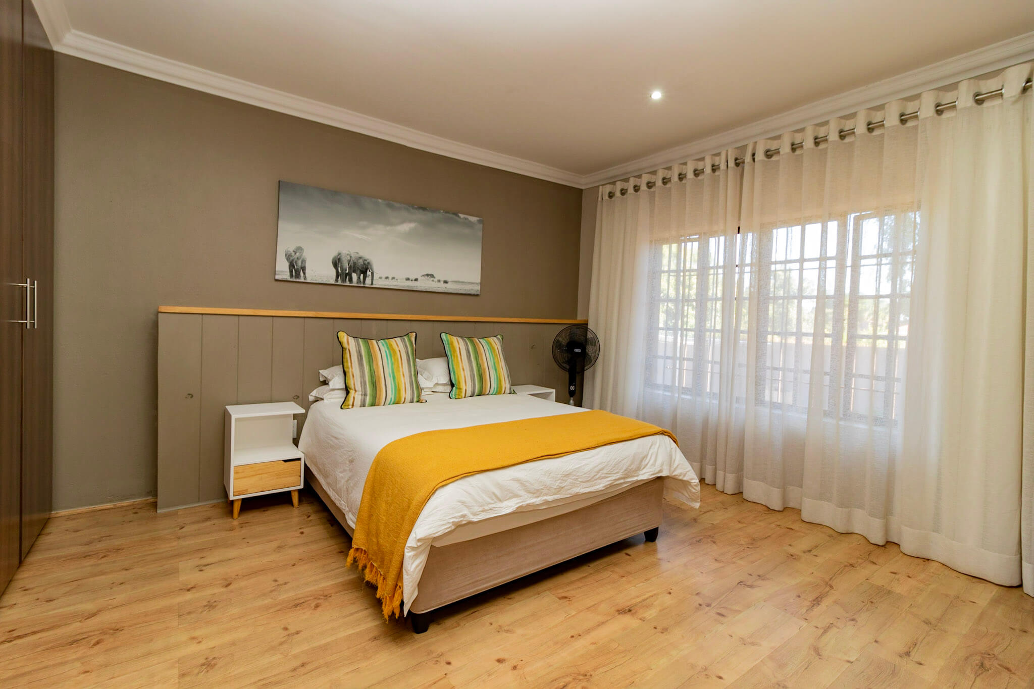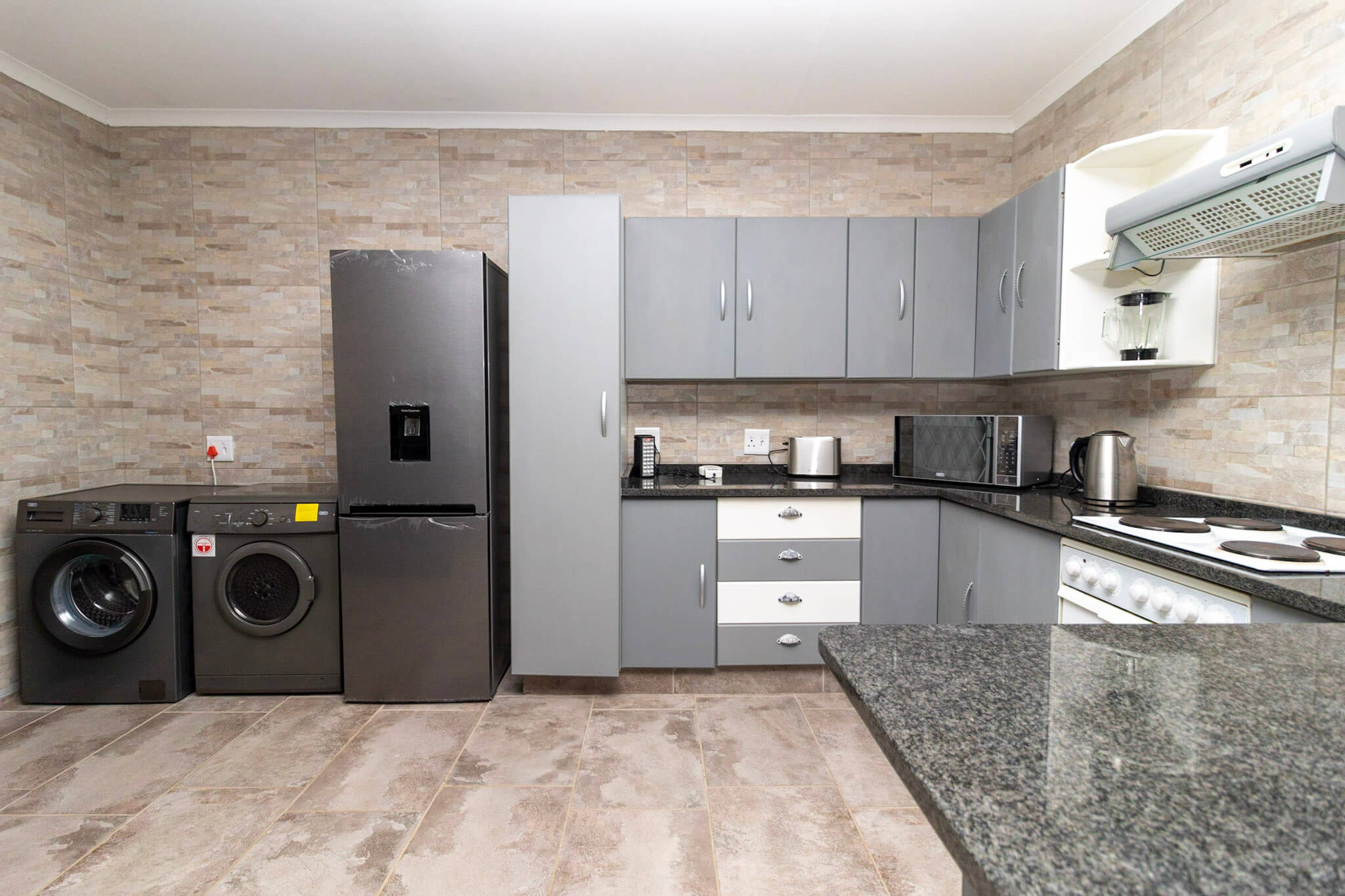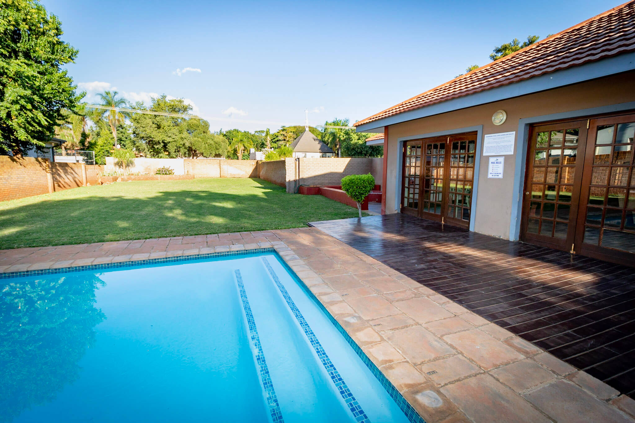The five bedroom house, has five en-suite luxurious guest rooms available. Each room sleeps two guests. The house offer a fully equipped communal kitchen, laundry room, garden, swimming pool, barbeque facilities, pool table, back up water and electricity.