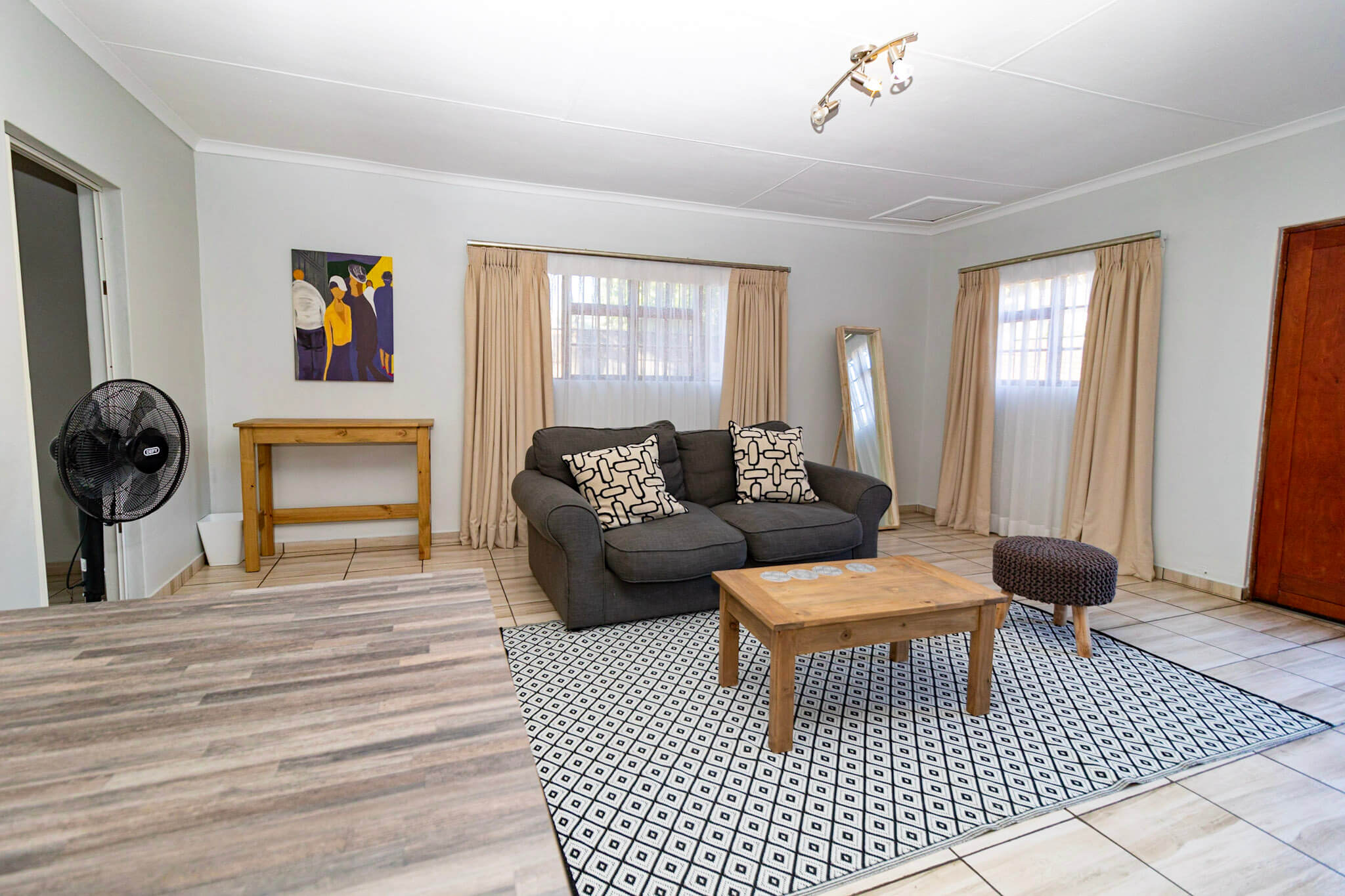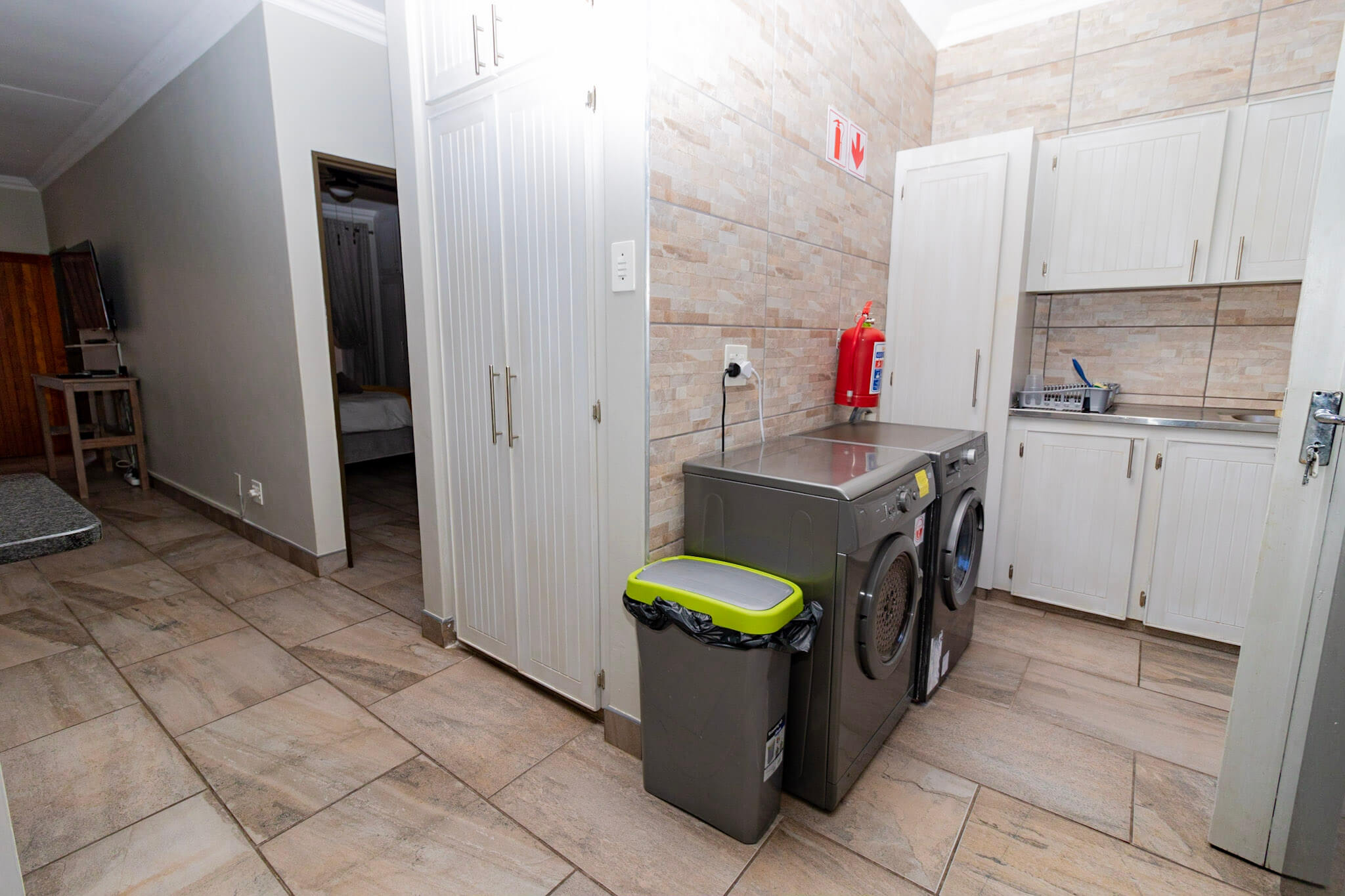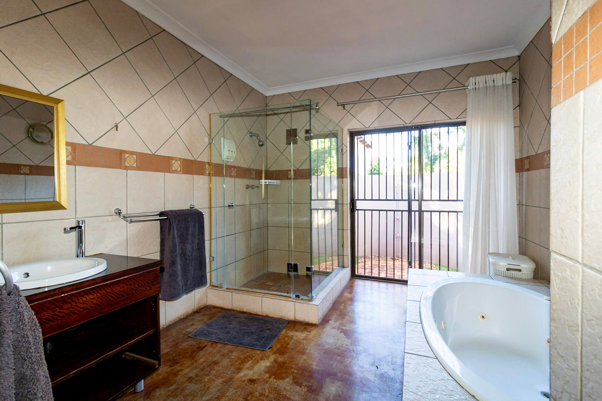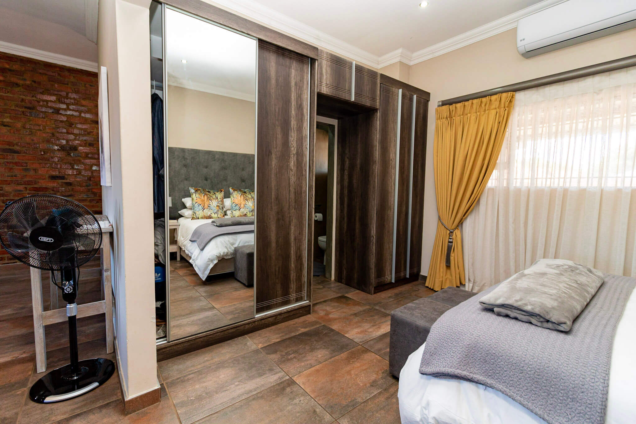 The five bedroom house, has five en-suite luxurious guest rooms available. Each room sleeps two guests. The house offer a fully equipped communal kitchen, laundry room, garden, swimming pool, barbeque facilities, pool table, back up water and electricity.