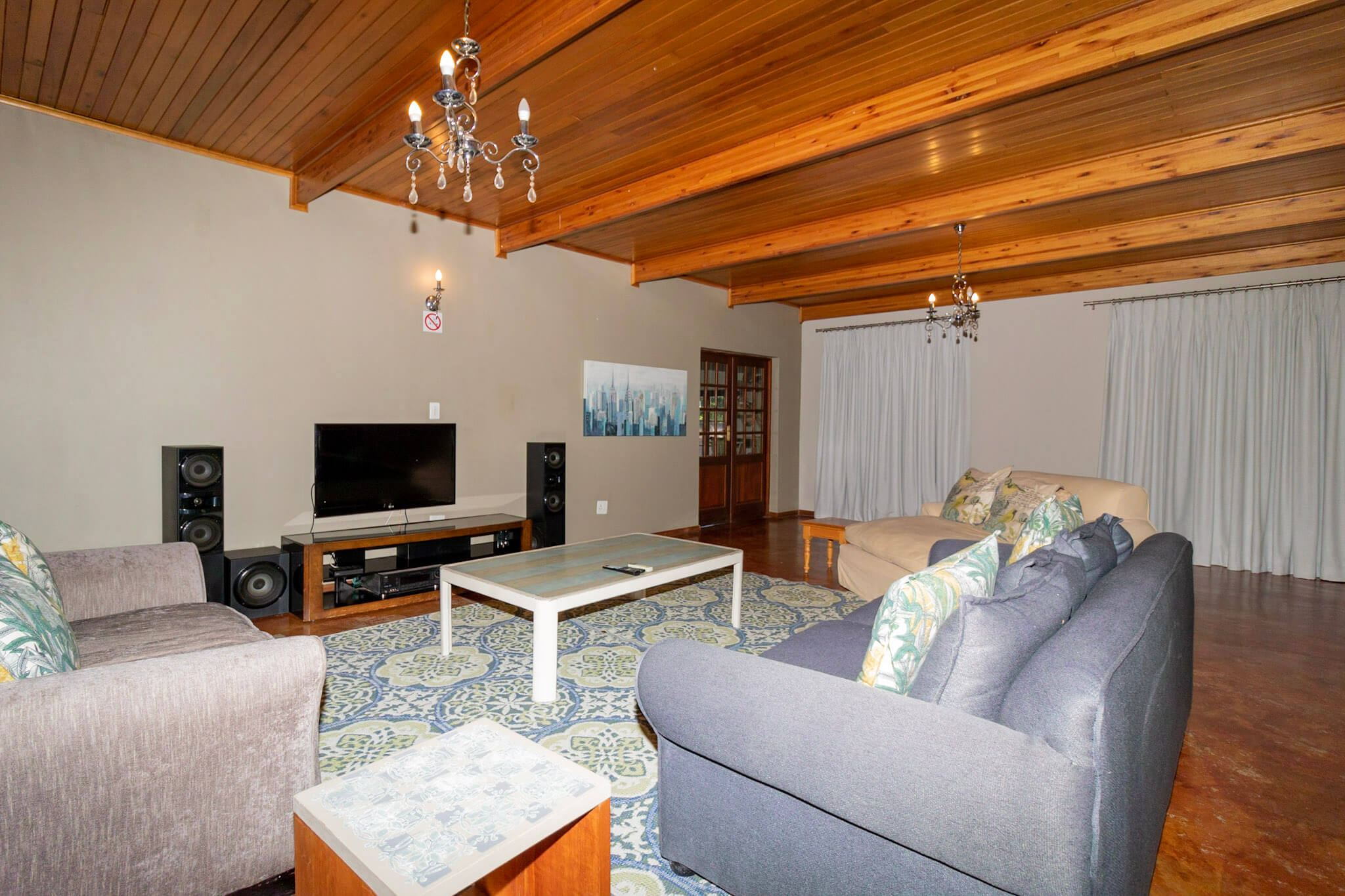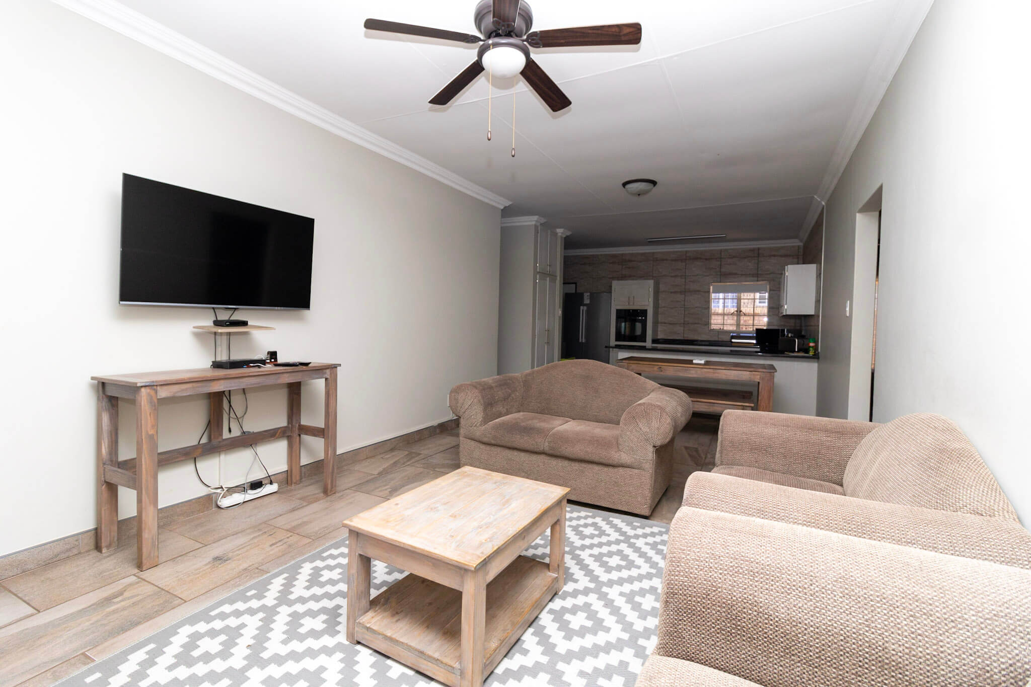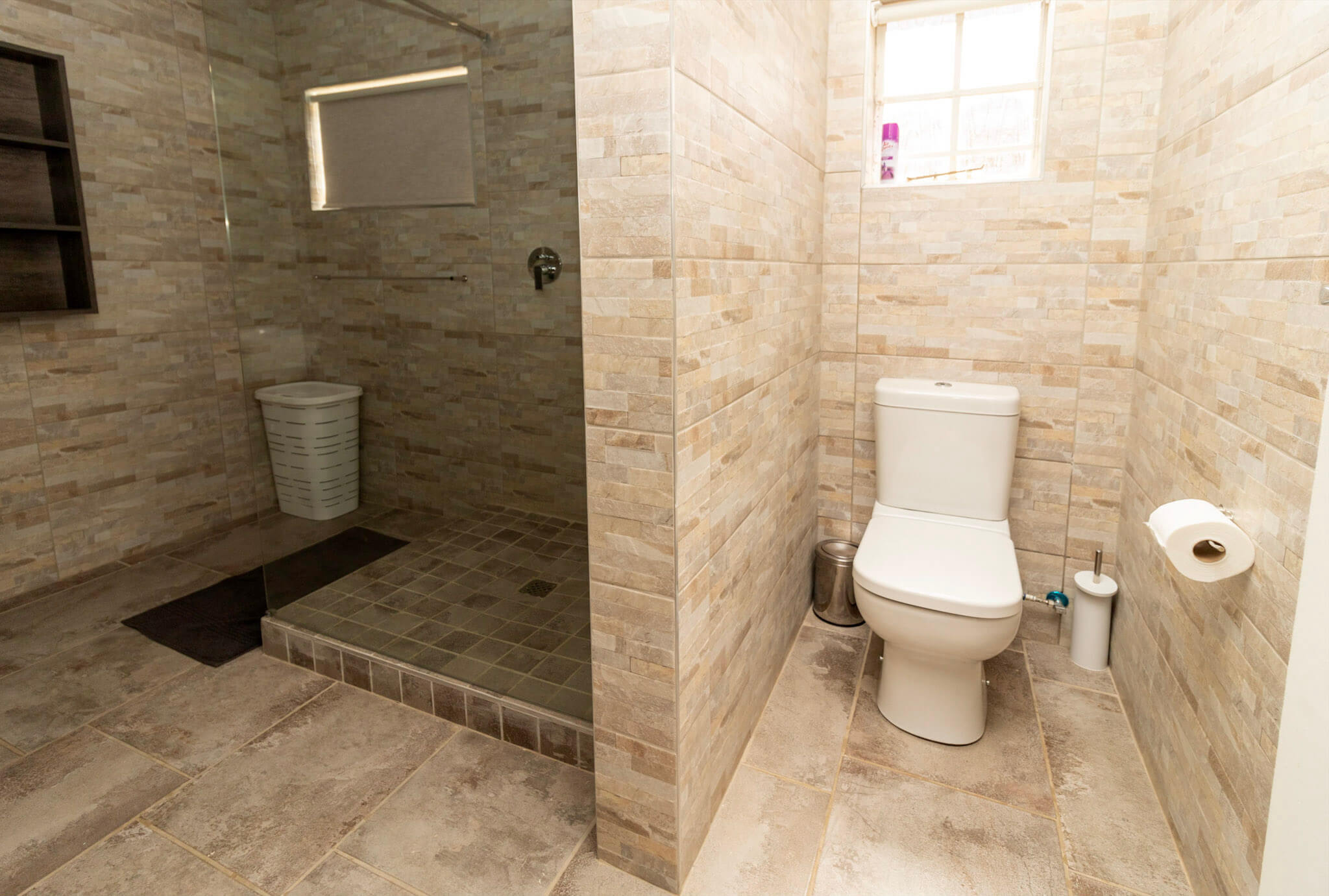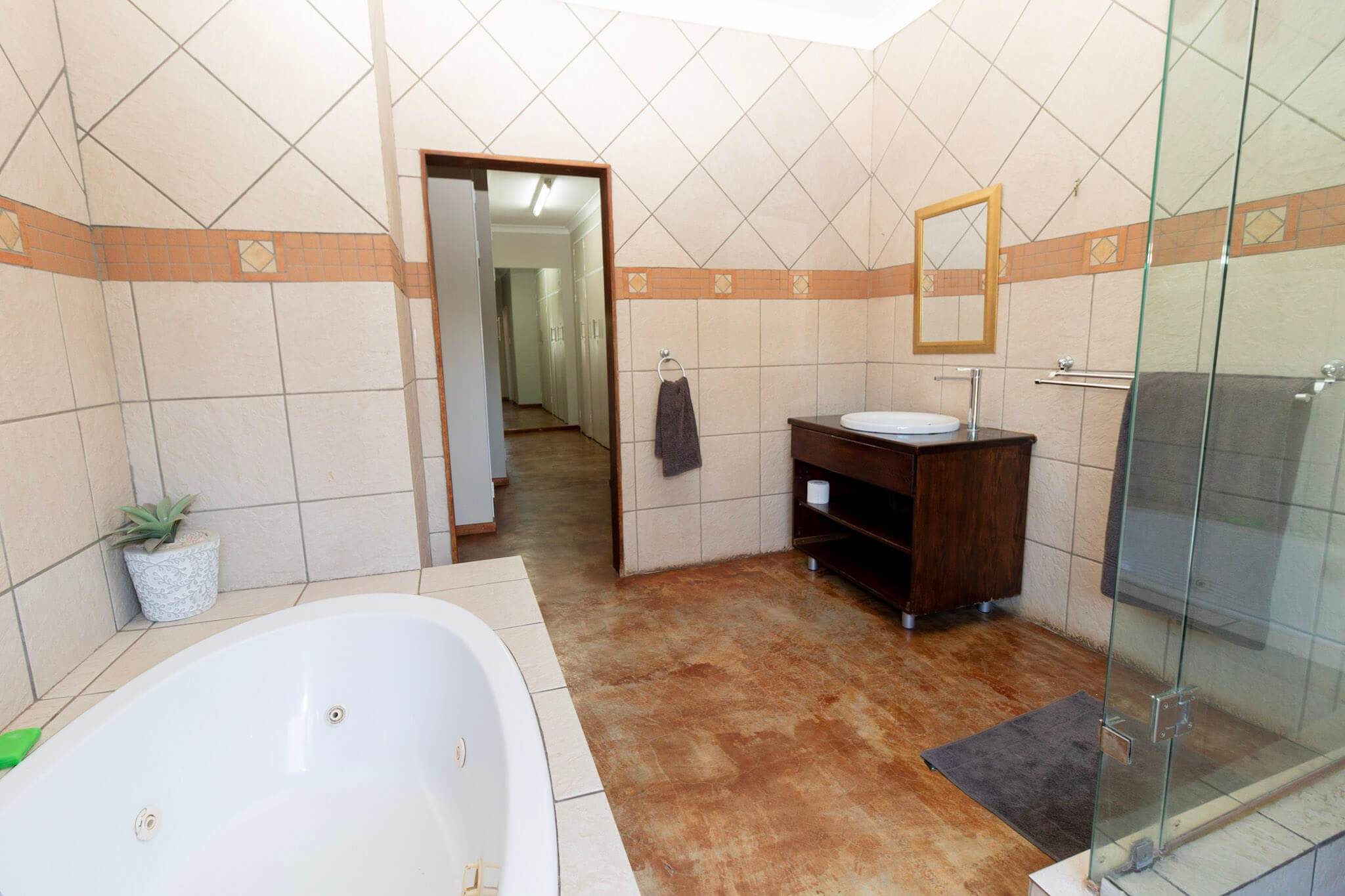 The five bedroom house, has five en-suite luxurious guest rooms available. Each room sleeps two guests. The house offer a fully equipped communal kitchen, laundry room, garden, swimming pool, barbeque facilities, pool table, back up water and electricity.