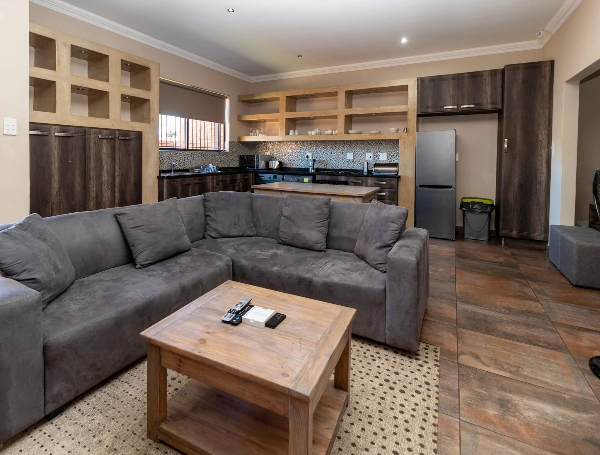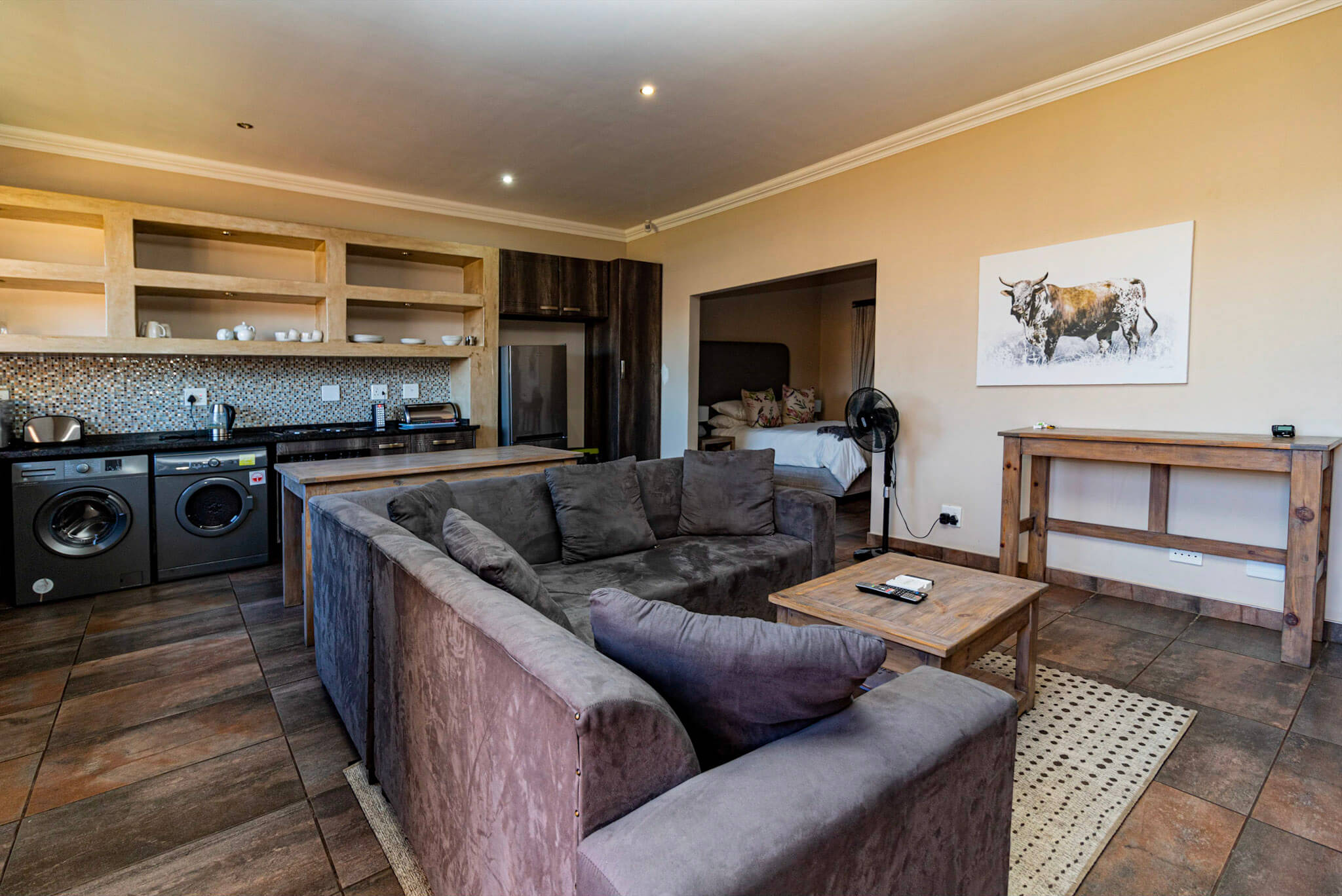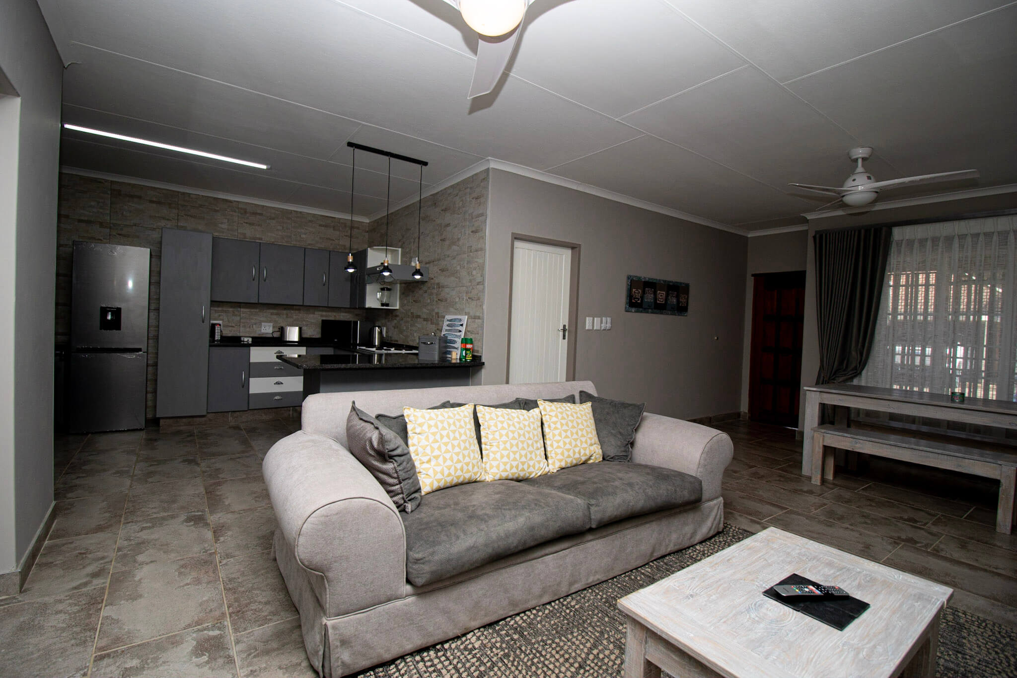 Luxurious air-conditioned, one bedroom separate from main house. This unit features a queen size bed and an en-suite bathroom fitted with a shower, toilet and baisin. For convenience, cotton sheets and towels are provided. The unit has a fully equipped kitchen for self-catering and features a mini oven stofe, fridge, toaster, kettle and microwave. In-room facilities include a lounge with a sofa, Smart TV, selected DSTV channels and unlimited Wi-Fi access.
