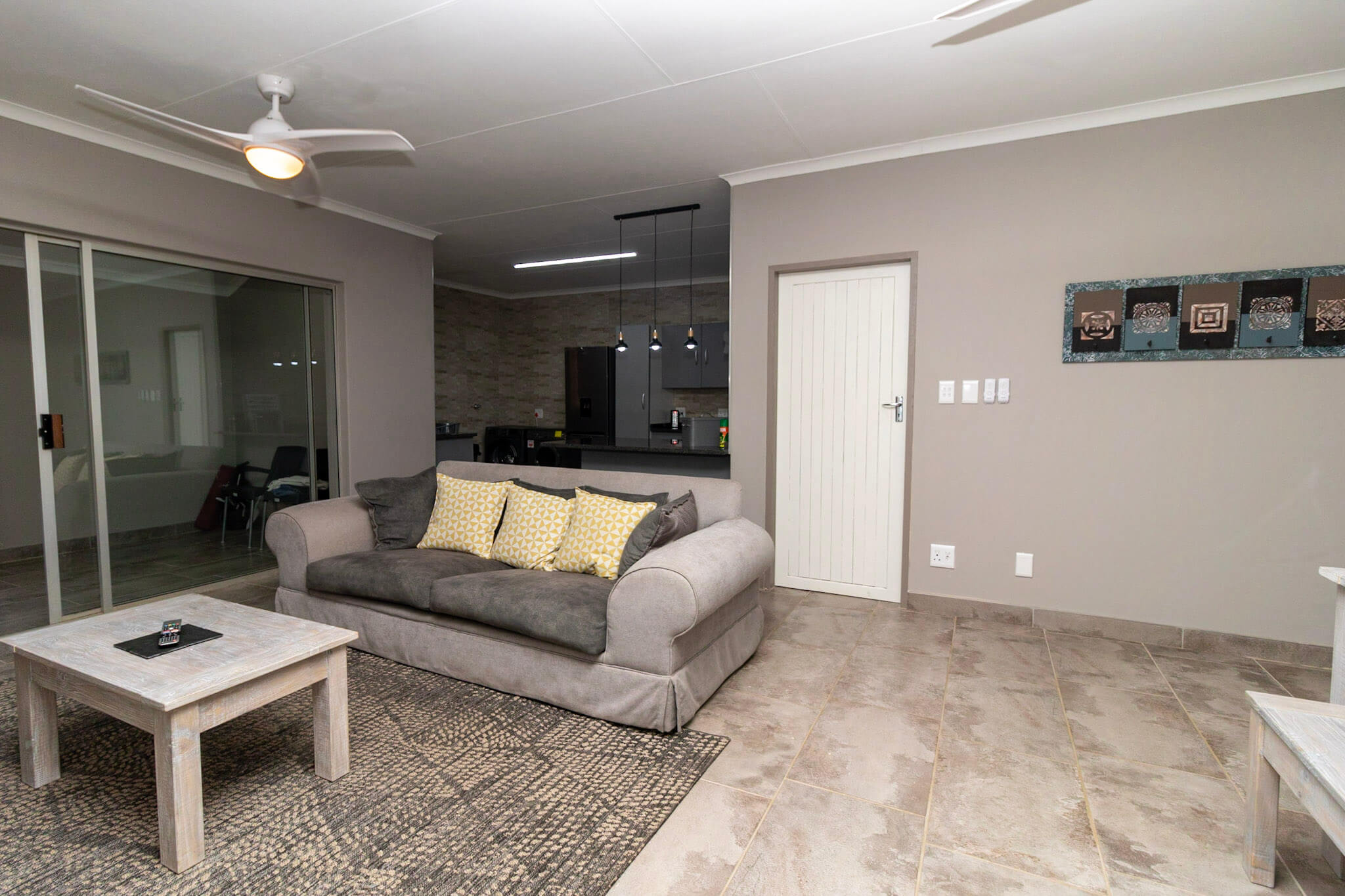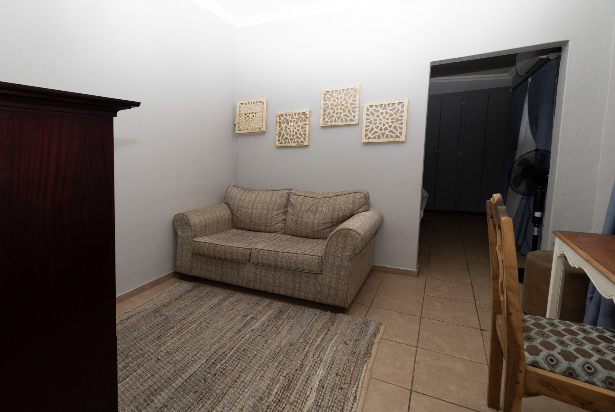 5 Luxury, spacious and comfortable self-catering apartment, with all the comforts of modern living. The apartment consist of an open-plan sleeping and lounge area with a queen size bed and en-suite bathroom, and for your convenience, cotton sheets and towels. The lounge leads out onto a court yard with barbeque facilities through a glass sliding door. There is secure covered parking available for two vehicles.