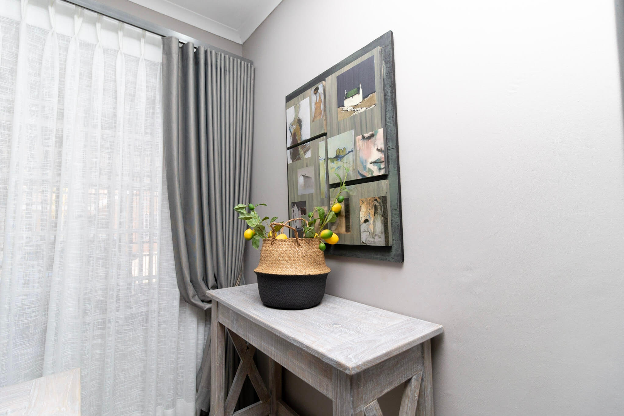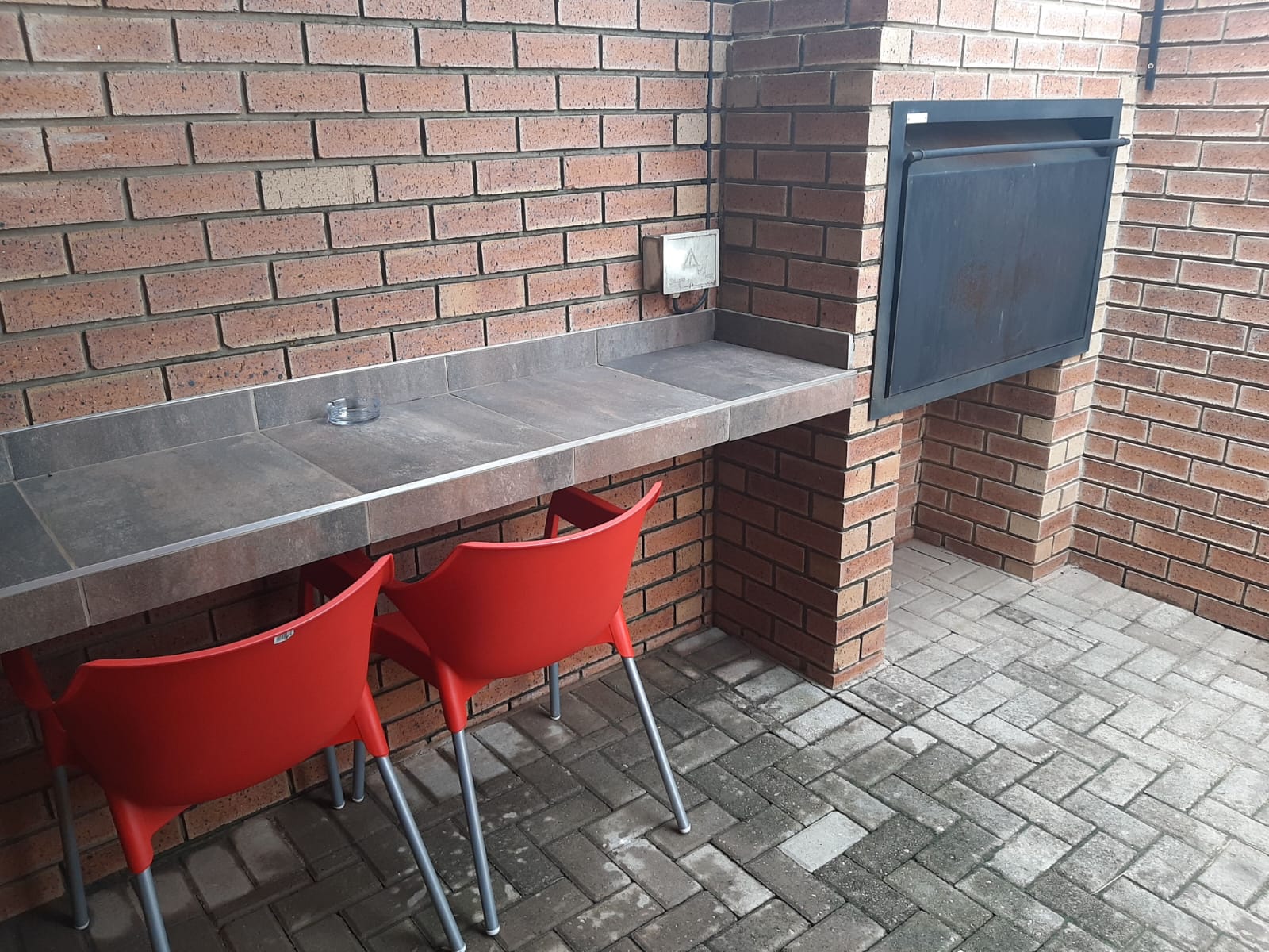 This is a spacious and comfortable self-catering apartment, with all the comforts of modern living. The apartment comprises an open-plan lounge, dining and kitchen. The lounge area a sofa lounge, Smart LED Television, selected DSTV channels, unlimited WIFI access. The dining area has an 4-seater dining room table. The lounge leads out onto a court yard with barbeque facilities through a glass sliding door. The kitchen is modern and fully equipped with oven, washing machine, tumble dryer, fridge, tea-and-coffee-making faculties.