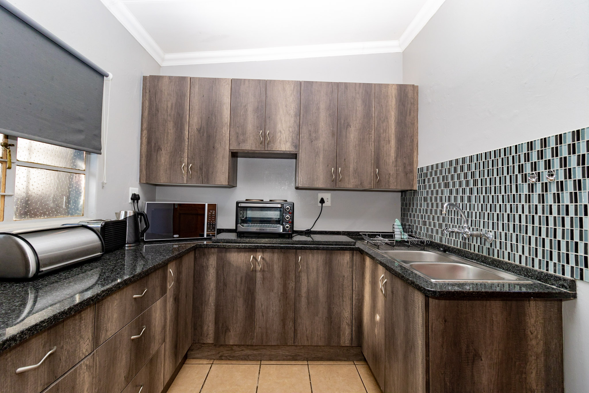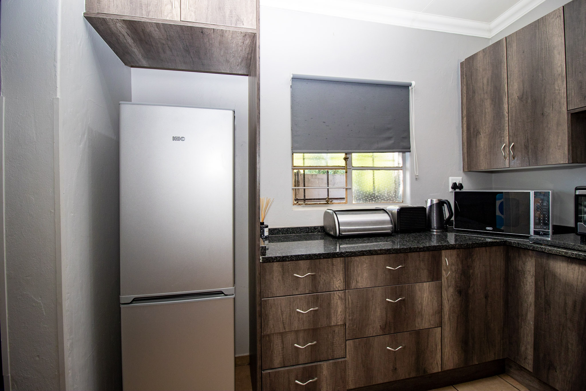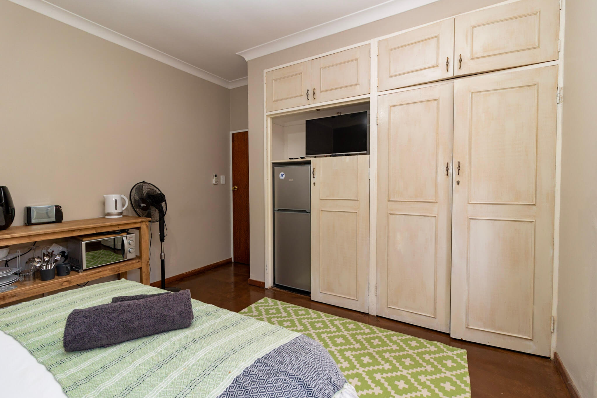 Luxurious airconditioned suite with its own unique ambience, is furnished with a queen size bed, en-suite bathroom with shower and toilet. For convenience, cotton sheets and towels are provided. The room is equipped with a mini kitchenette with a Microwave, Air Fryer, Toaster, as well as tea-and-coffee-making facilities. A desk, Unlimited WiFi access, as well as a Smart TV with selected DSTV channels. Please not, smoking is not allowed in the room, but guests may smoke in the garden.